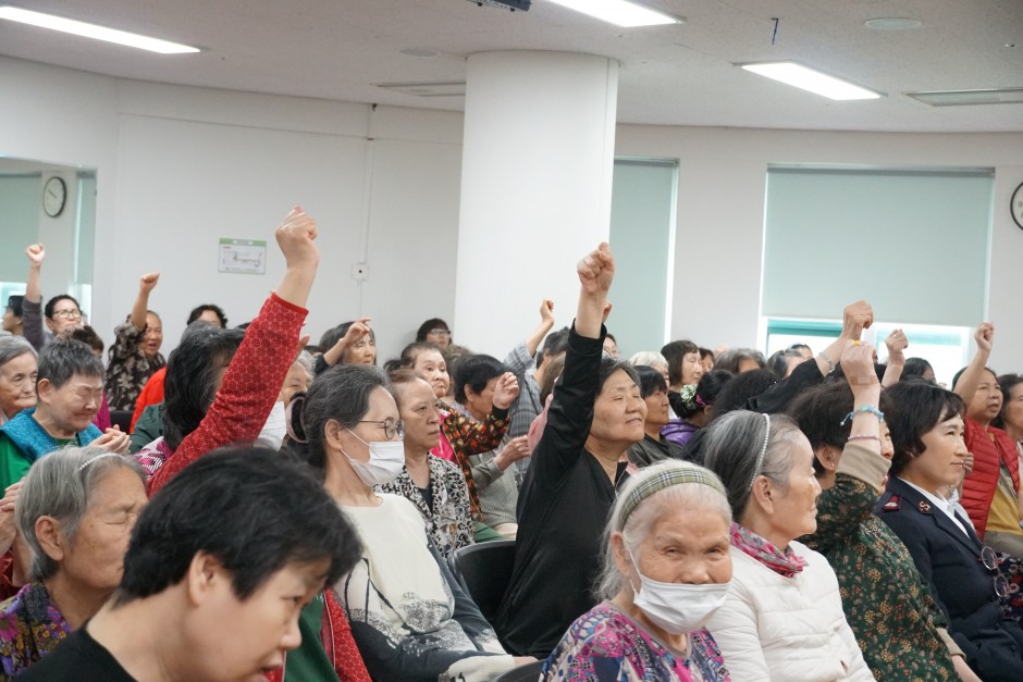 또한, 진선옥 봉사자님의 참여형 공연을 보고, 따라하며 흥겨운 추석을 보낼 수 있었습니다.