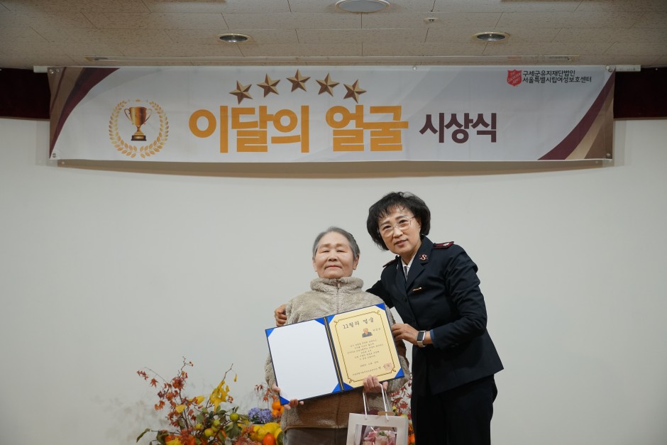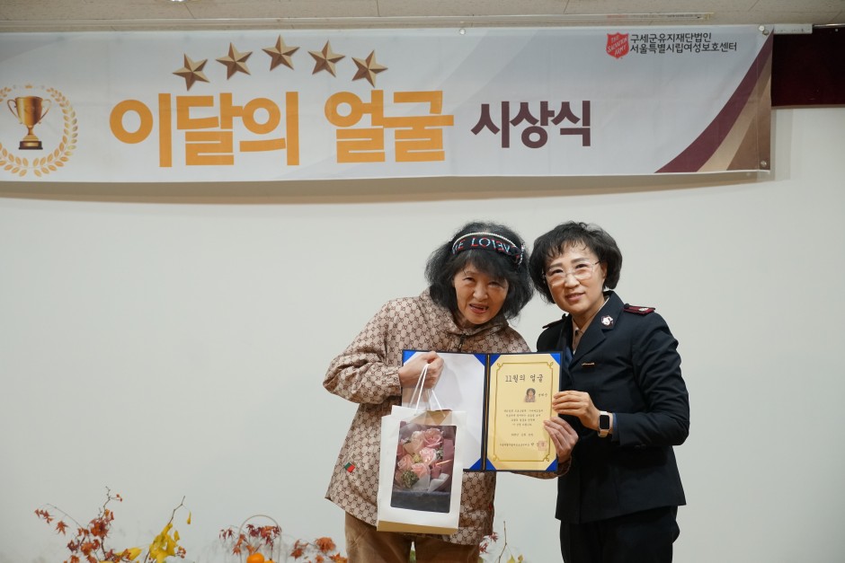 - 뷰티살롱 프로그램과 가나다교실 프로그램에 성실하게 참여하는 모습을 보여 이달의 얼굴로 선정해 이 상을 드립니다.