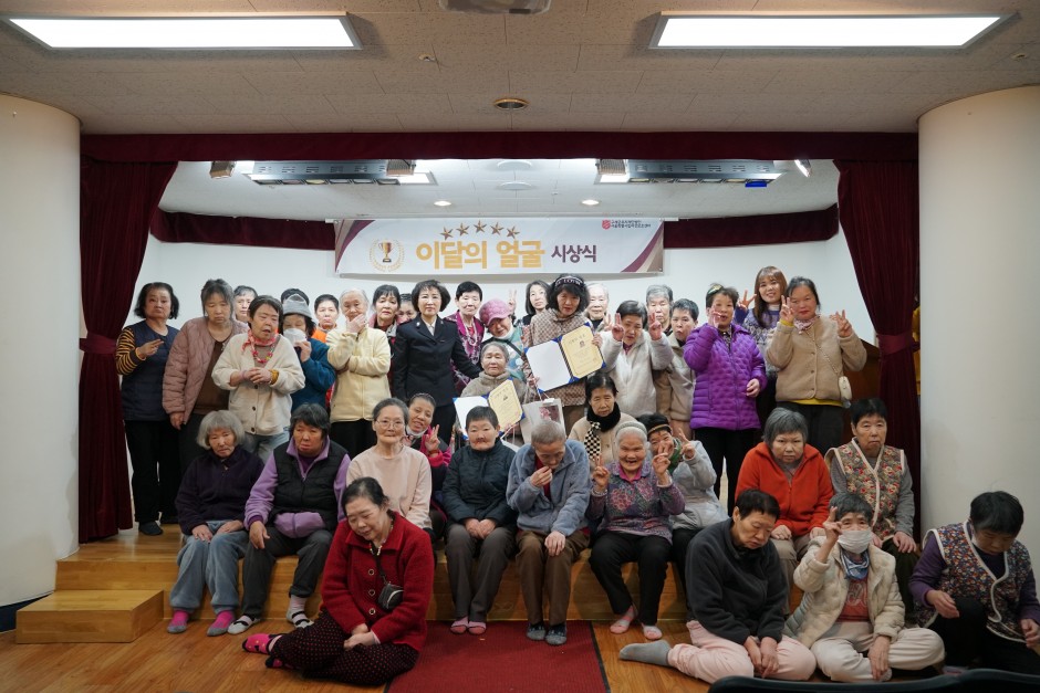 - 걷기 운동을 꾸준히 실천하고, 식사를 거르지 않으며, 인지치료 프로그램에도 성실히 참여하는 모습을 보여 이달의 얼굴로 선정해 이 상을 드립니다.